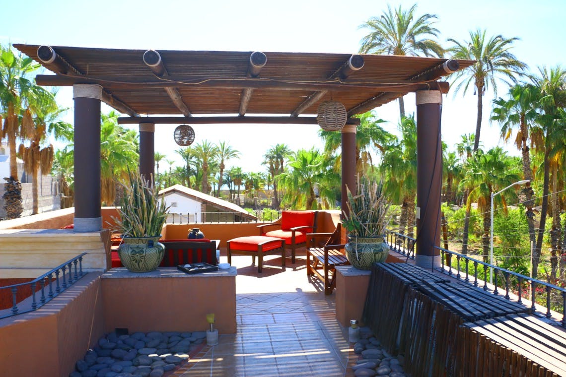 Additional to it´s private terrace and balcony , the guests have access to the terrace in the third floor, equipped with furniture , this space offers a beautiful view to the mountains and a landscape plenty of palm threes.